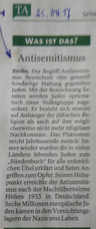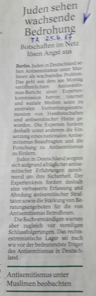 Aus meiner Sicht ist dieser politische SPRENGSTOFF mit dem unbedachten IMPORT des ANTISEMITISMUS seitens der Bundesregierung heraufbeschworen worden, – und das -, ohne den SOUVERÄN gefragen zu haben.