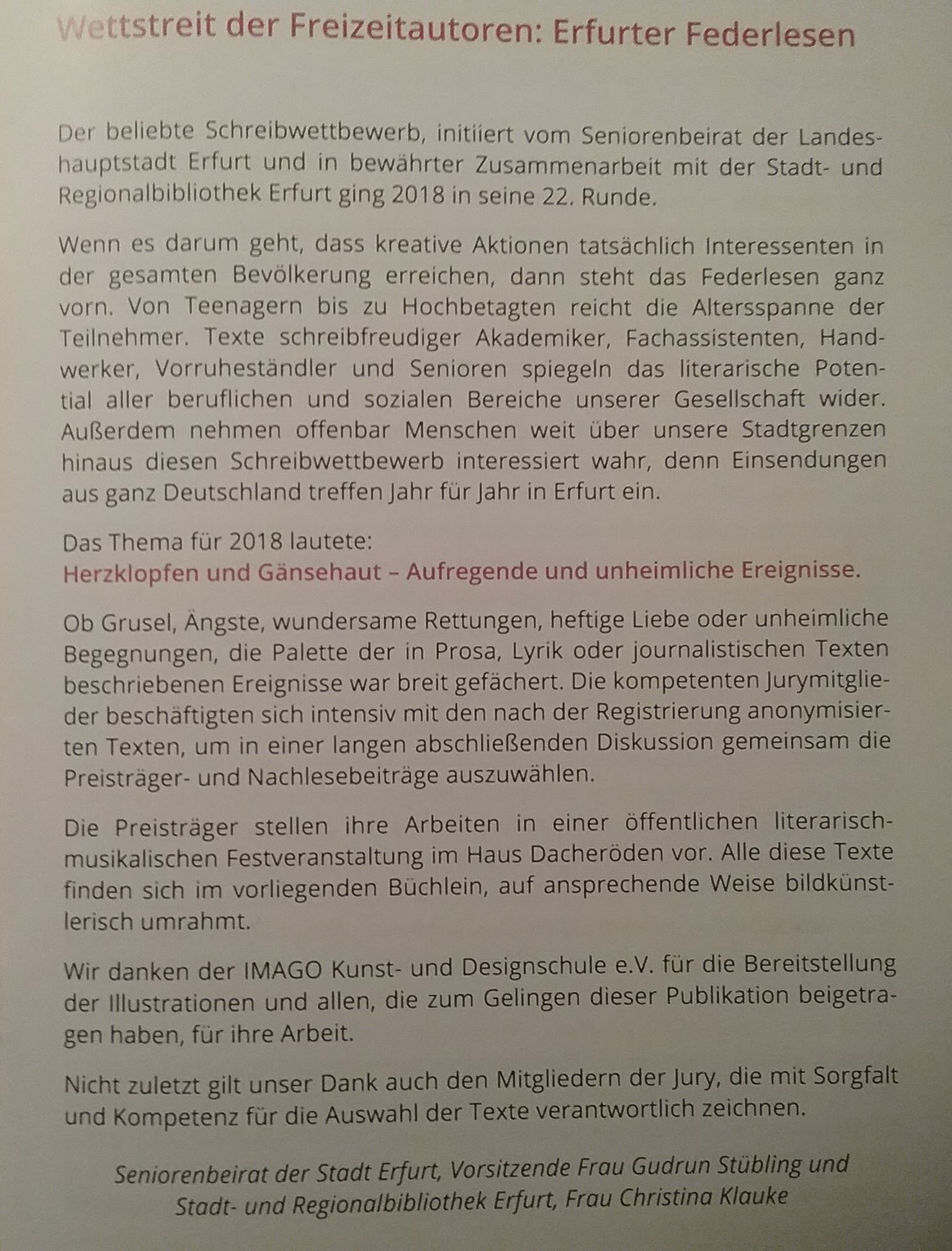 HEUTE ist in ERFURT für mich der erste TAG einer öffentlichen LESUNG zur ARBEIT in meinem DENK- und SCHREIB-LABOR