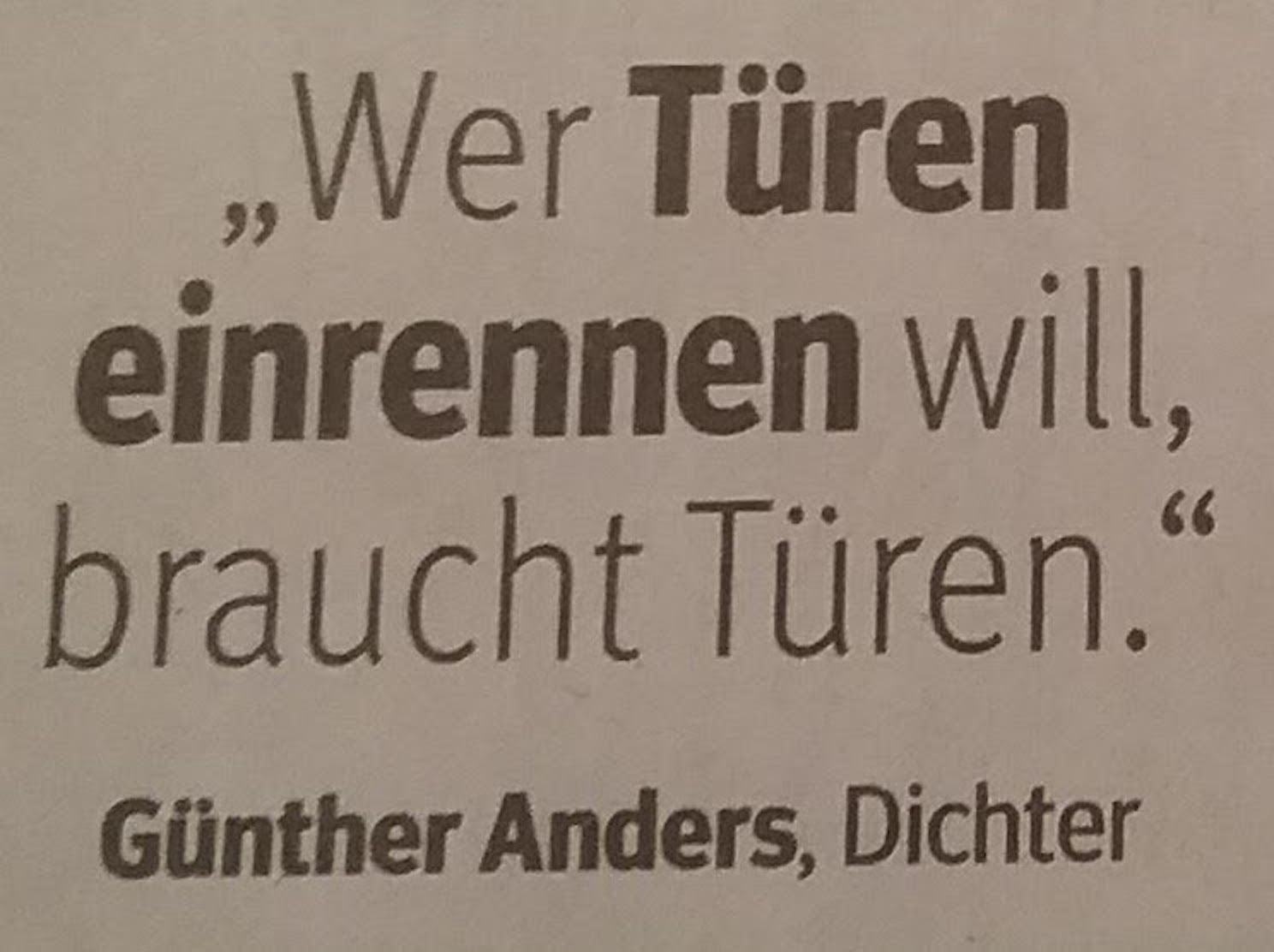 wo die TÜREN unverschlossen sind. “ [G. A.]
