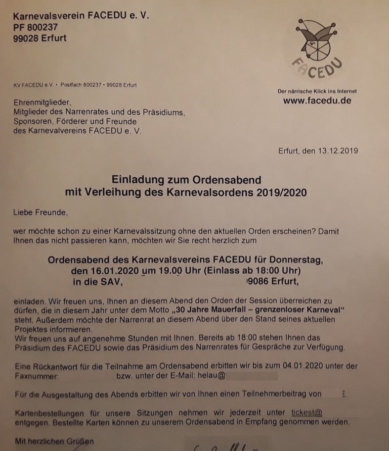 Heute folge ich der EINLADUNG des Erfurter karnevalistischen REGENTENPAARES zum närrischen PRINZENFRÜHSTÜCK … *
