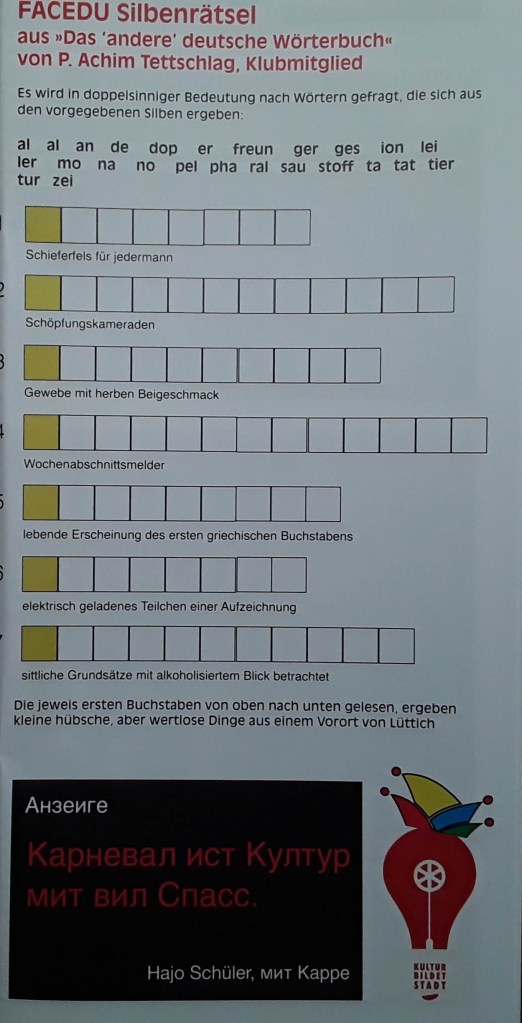 … traditionsgemäss mit einem närrischen QUERDENKER-RÄTSEL