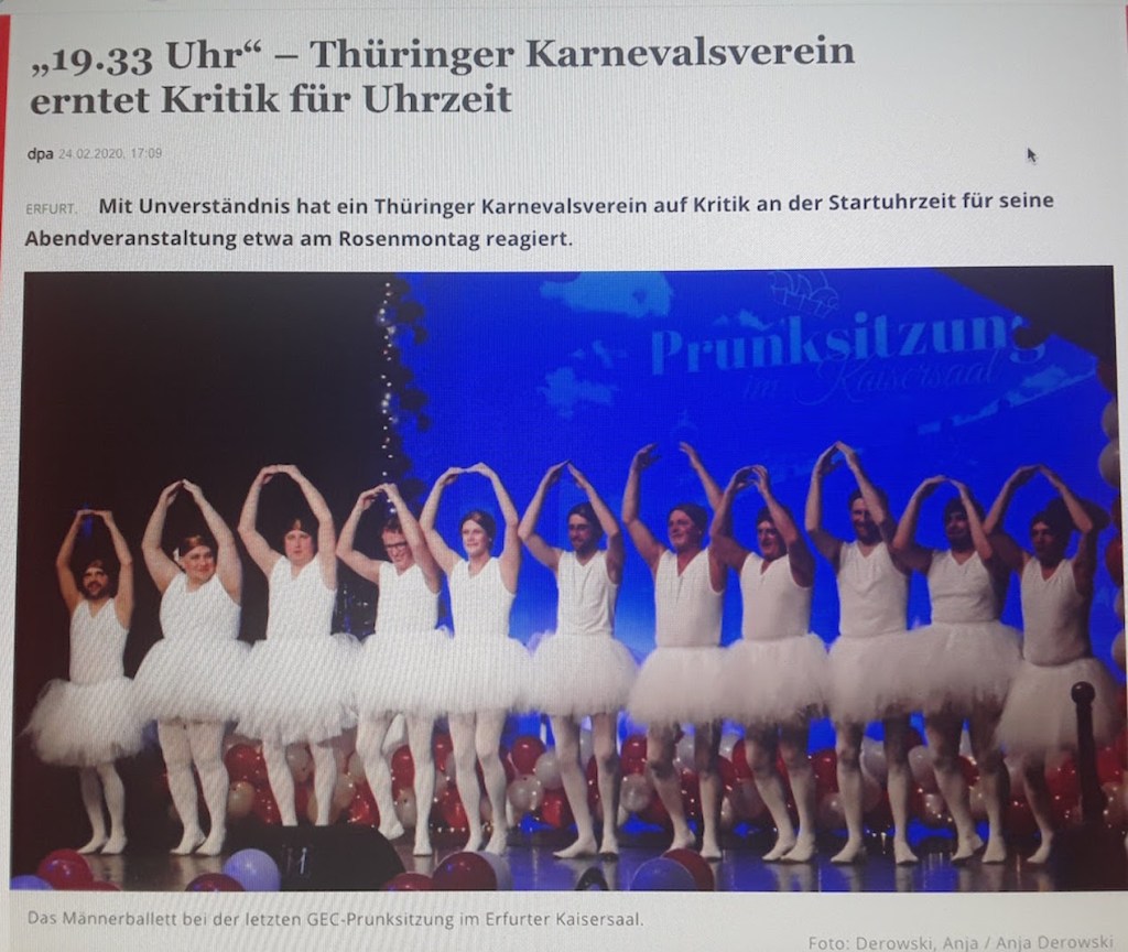 Thüringer Allgemeine veröffentlichte auf FACEBOOK KRITIK, – wo und wer auch immer diese geäußert hat -, an der UHRZEIT zur Eröffnung von karnevalistischen SITZUNGEN des KV e.V. FaCeDu