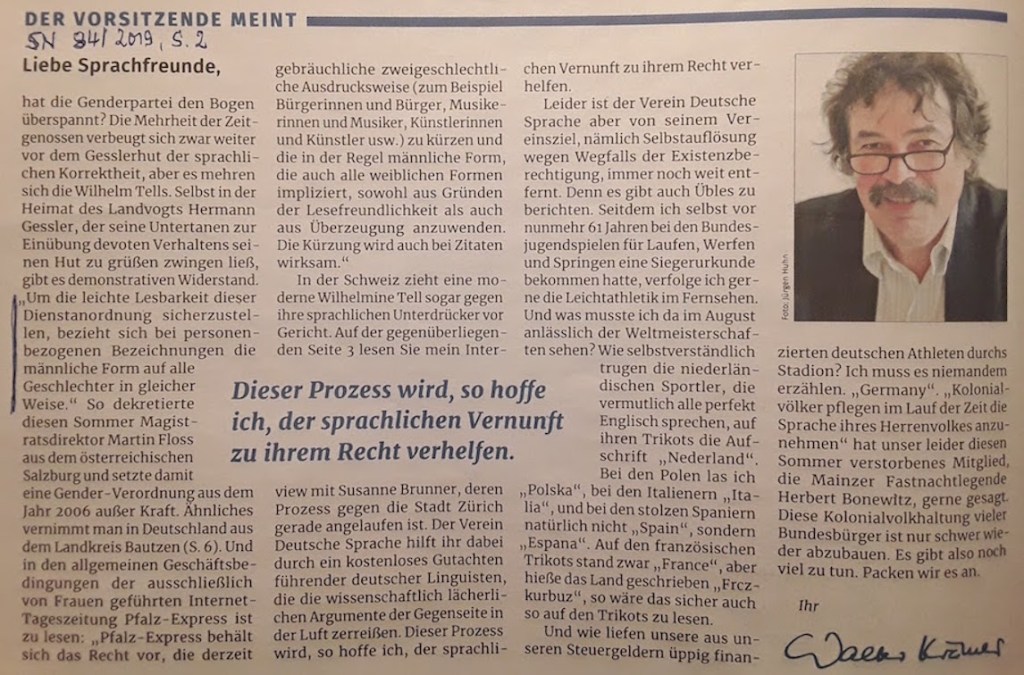 Dieser Artikel und weitere über die sogenannte geschlechtergerechte Sprache waren für mich Anlass, auch meine klare MEINUNG dazu öffentlich kundzutun …: