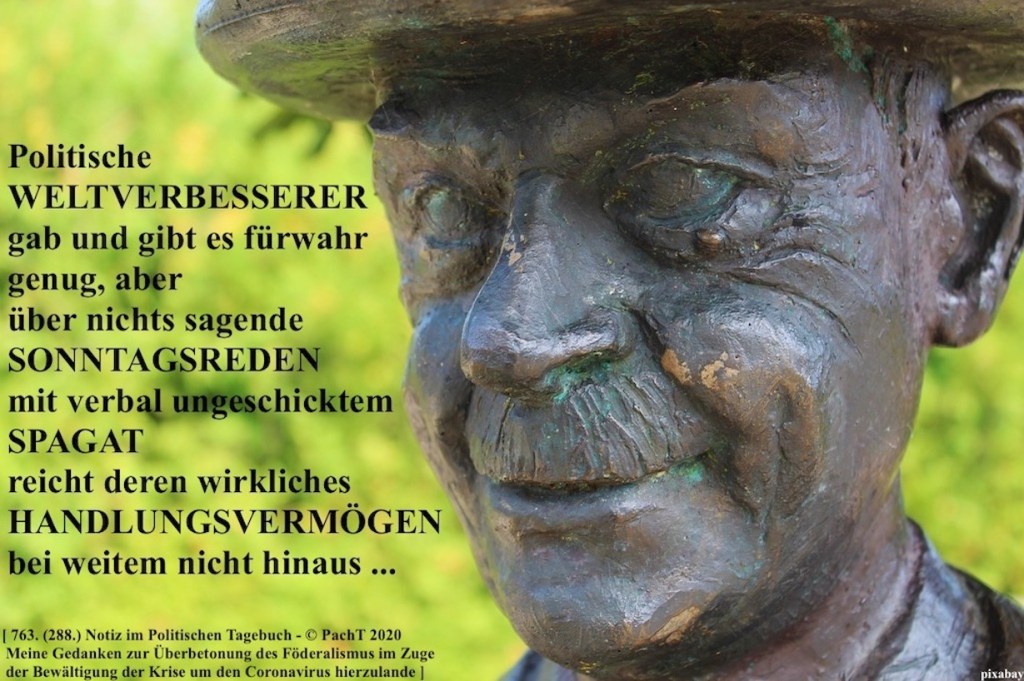 Meine Gedanken zur Überbetonung des Föderalismus im Zuge der Bewältigung der Krise um den Coronavirus hierzulande