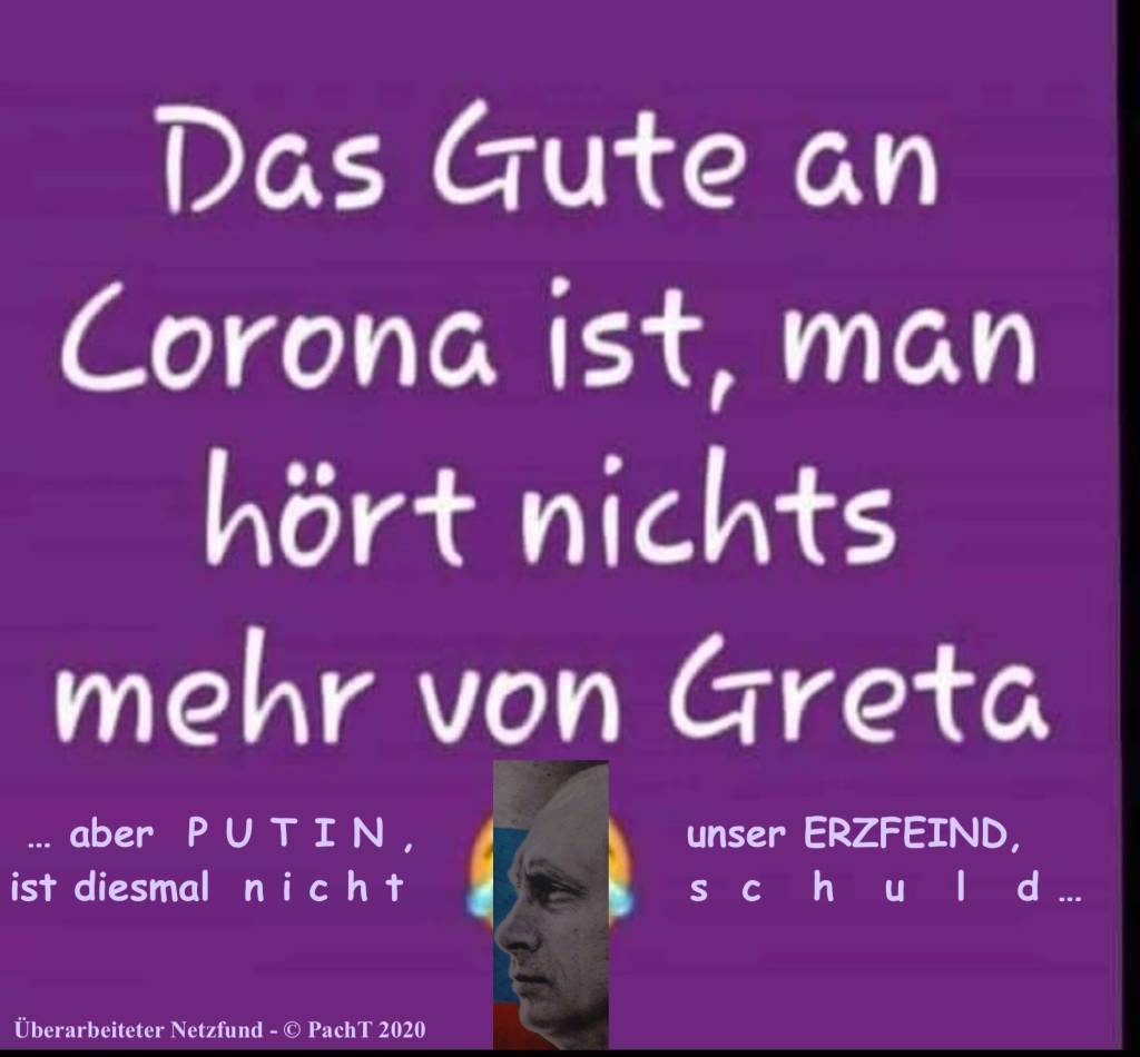 15.05.20 # #CORONAVIRUS >> #GRETA und #PUTIN # 15. Mai 2020PachT _ Autor / Blogger 1 Kommentar @ IDEE @ AUSFÜHRUNG @ Fotomontagen @ © PachT @ Klicke, um auf X zu teilen (Wird in neuem Fenster geöffnet) X Klick, um auf Facebook zu teilen (Wird in neuem Fenster geöffnet) Facebook Gefällt mir Wird geladen …