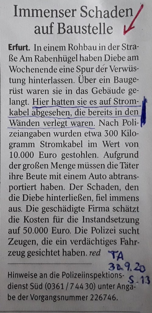Zum EINTRAG von heute Nacht wurde ein NACHTRAG erforderlich.
