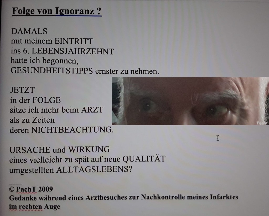 zur Nachkontrolle meines Infarktes im rechten Auge