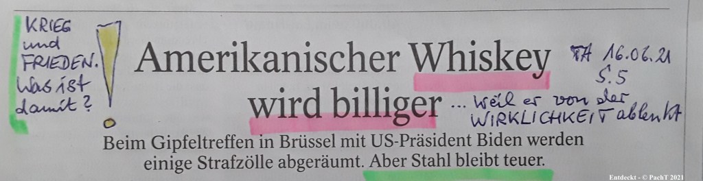 20.06.21 # SCHLAGZEILEN: leichtfertig oder schlagfertig (01-02) 20. Juni 202117. Juni 2021PachT _ Autor / Blogger 1 Kommentar Meine neue SERIE: “SCHLÄGE machen weise.“ [Ubk.] IDEE @ AUSFÜHRUNG @ Text / Fotos & Auswahl@ © PachT Klicke, um auf X zu teilen (Wird in neuem Fenster geöffnet) X Klick, um auf Facebook zu teilen (Wird in neuem Fenster geöffnet) Facebook Gefällt mir Wird geladen …