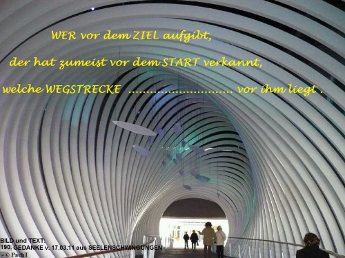 Wer vor dem ZIEL aufgibt, der hat zumeist vor dem START verkannt, welche WEGSTRECKE vor ihm liegt! ___ © PachT 2011 ___