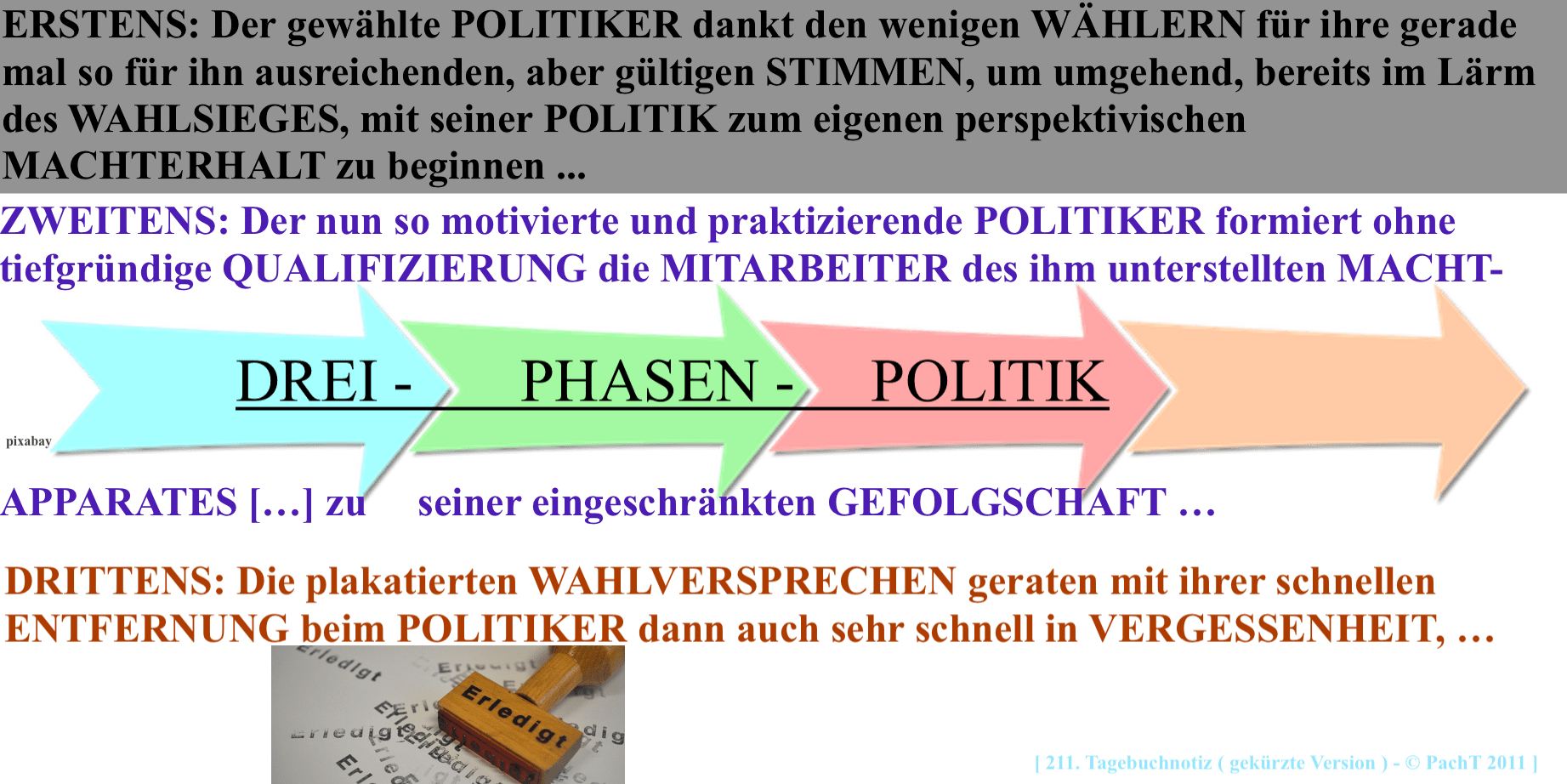 Zu einem Pressebeitrag in der TA v. 09.06.11 gebrauchte ich in meinem Blog-Kommentar den Begriff "Drei-Phasen-Politik"