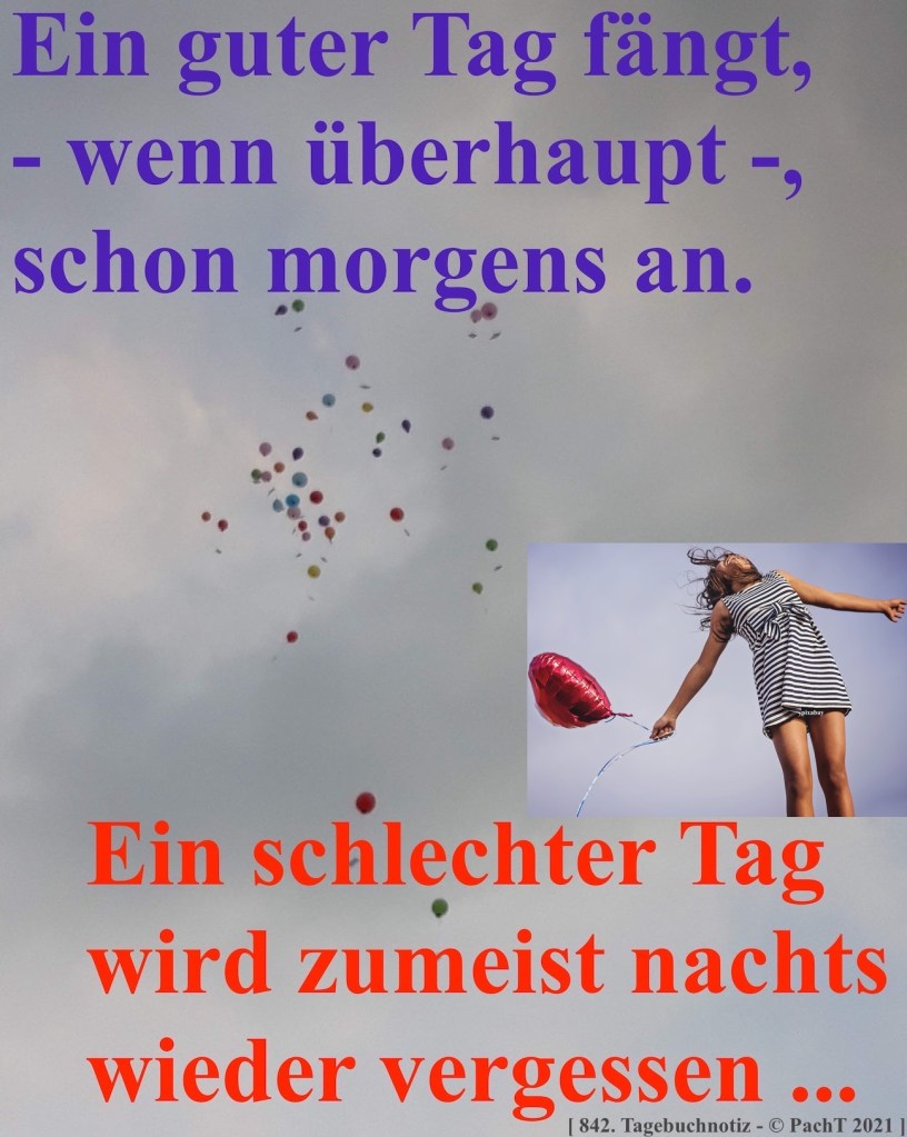 Ein guter Tag fängt, - wenn überhaupt -, schon morgens an; ein schlechter Tag wird zumeist nachts wieder vergessen ... ___ © PachT 2021 ___