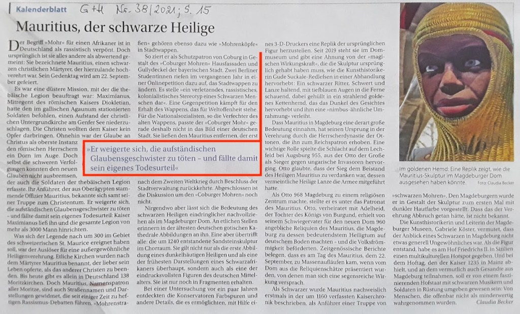 zu “Mauritius, der schwarze Heilige“ [Feuilleton]