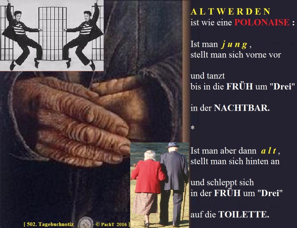 Schon manchmal eigenartig, auf was für GEDANKEN und VERGLEICHE man so kommt. Letztendlich aber doch sind diese im ALLTAG allgegenwärtig, man übersieht oder unterschätzt sie nur zu oft. Meine 869. Tagebuchnotiz ist so eine MOMENTAUFNAHME ...