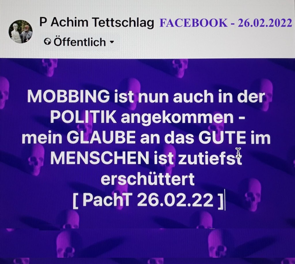 MENSCHEN in unserer Mitte, die g e m o b b t werden, geben sich durch SELBSTMORD auf oder sie werden aggressiv -