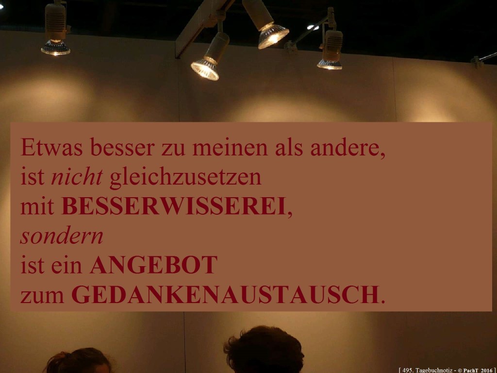 Etwas besser zu meinen als andere, ist nicht gleichzusetzen mit BESSERWISSEREI, sondern ist ein ANGEBOT zum GEDANKENAUSTAUSCH. ___ © PachT 2016 SSW 495 ___