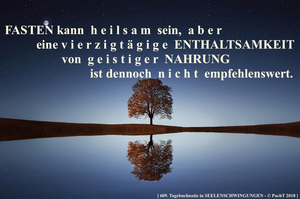 FASTEN kann heilsam sein, a b e r eine v i e r z i g t ä g i g e ENTHALTSAMKEIT von g e i s t i g e r NAHRUNG ist dennoch n i c h t empfehlenswert ... ___ © PachT 2018 SSW 609 ___