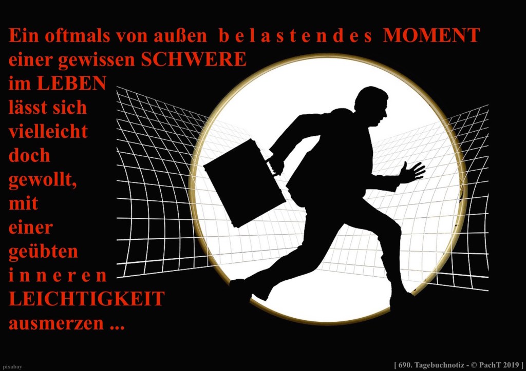 Ein oftmals von außen belastendes MOMENT einer gewissen SCHWERE im LEBEN lässt sich vielleicht doch gewollt, mit einer geübten inneren LEICHTIGKEIT ausmerzen ... ___ © PachT 2019 SSW 690 ___