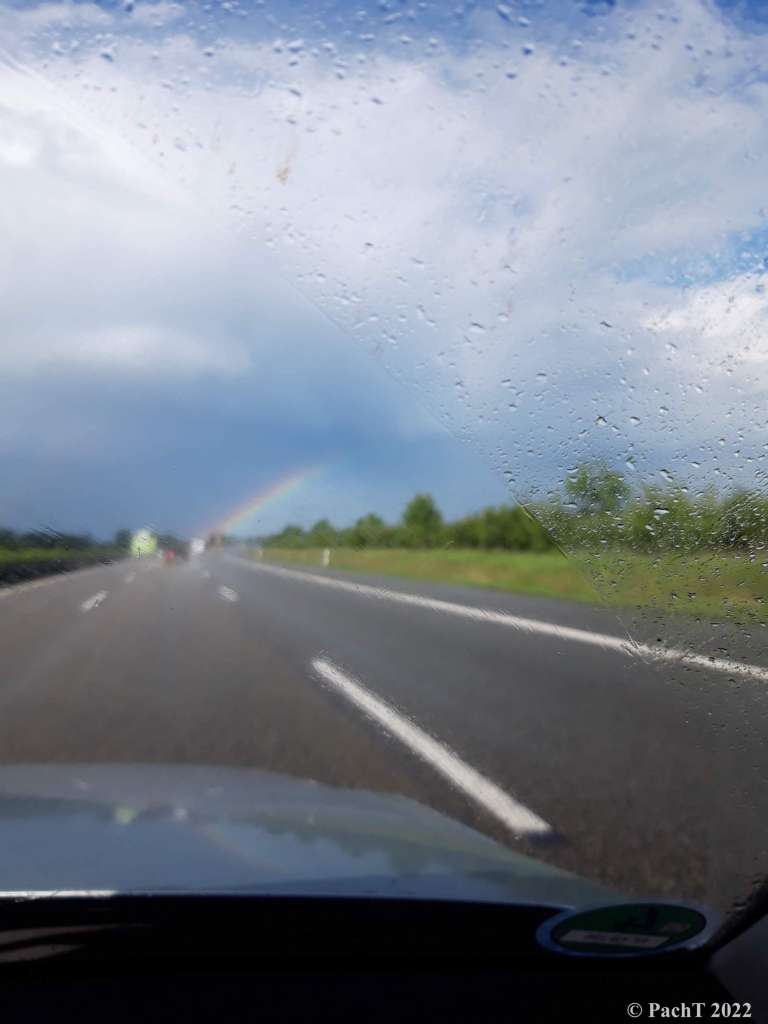 Der Himmel meinte es gut mit uns, und gewährte uns auf dem Weg zum Parkplatz den Einhalt der Nässe von oben … Der aber dann während der Fahrt auf derAutobahn wieder aufgehoben wurde. Allerdings konnten wir eine Reihe herrlicher REGENBOGEN sichten, nur mit dem ABLICHTEN wollte es nicht so richtig klappen. Auf jeden Fall erreichten wir trotz des Starkregens und Aquaplanings unbeschadet unser Zuhause. Ein schöner Tag war es allemal!
