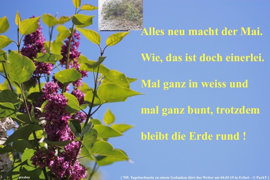 Alles neu macht der Mai. Wie, das ist doch einerlei … Mal ganz in Weiß und mal ganz bunt, trotzdem bleibt die Erde rund! __ © PachT 2019 SSW 709 ___