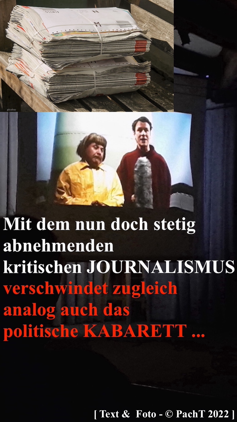 Mit dem nun doch stetig abnehmenden kritischen JOURNALISMUS verschwindet zugleich analog auch das politische KABARETT ...