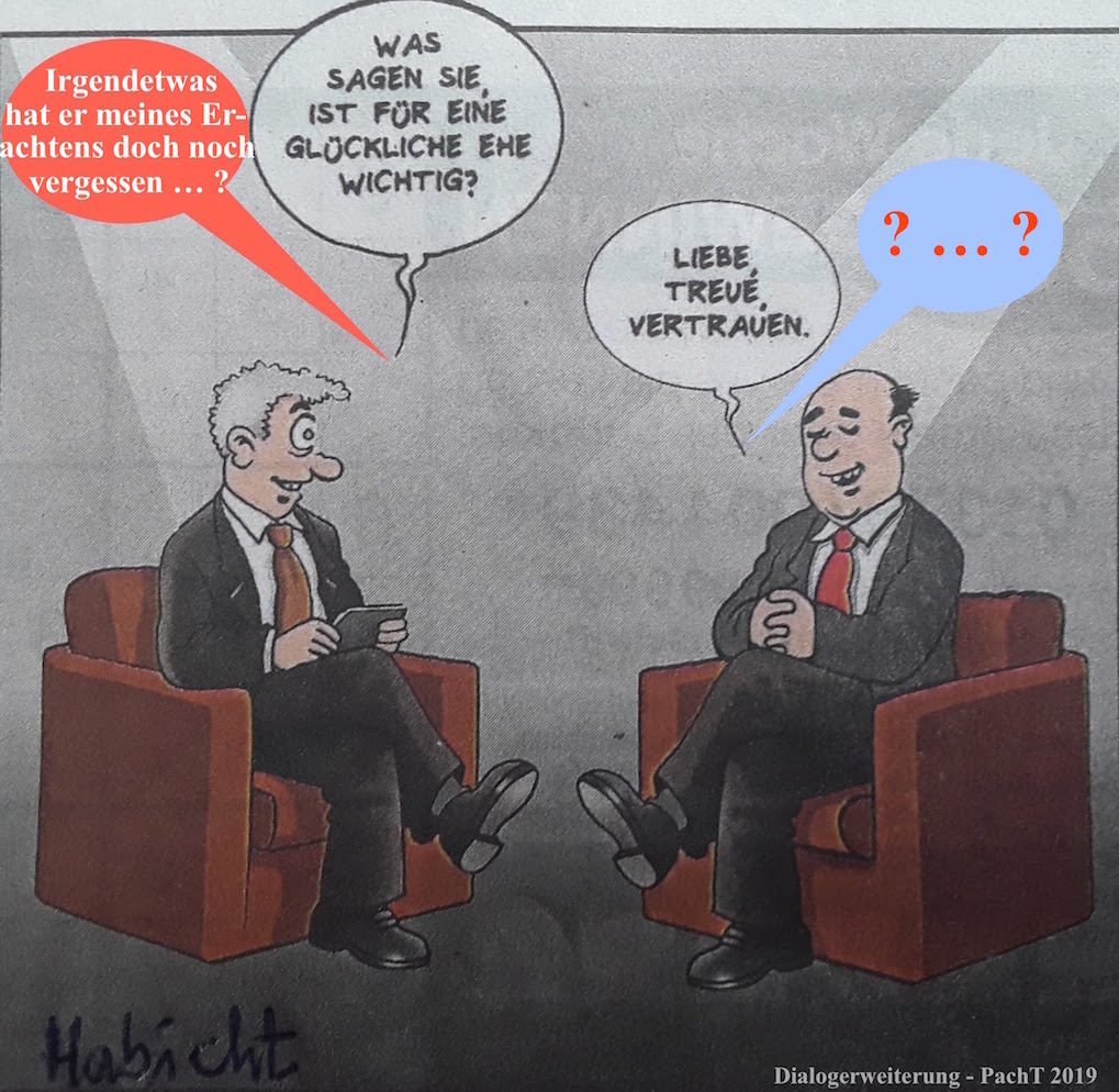 06.12.22 #EHEBÜNDNIS kommt einer #ACHTERBAHNFAHRT gleich – wer anderes behauptet, kaschiert etwas! 6. Dezember 20226. Dezember 2022PachT _ Autor / Blogger 1 Kommentar Humorvolle BETRACHTUNG an einem familiären JAHRESTAG … : Der BLICKWINKEL zum PARTNER wird von Jahr zu Jahr einfach ein anderer > “HOCHZEITSTAG ist der TAG zwischen dürfen, müssen und können.“ [Ubk. / PachT 2022] IDEE @ AUSFÜHRUNG @ Text @Foto&Auswahl @ © PachT Klicke, um auf X zu teilen (Wird in neuem Fenster geöffnet) X Klick, um auf Facebook zu teilen (Wird in neuem Fenster geöffnet) Facebook Gefällt mir Wird geladen …
