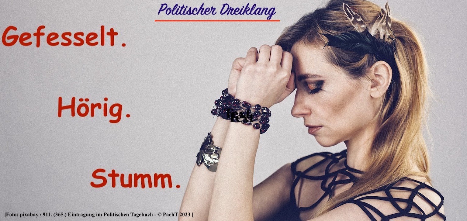09.01.23 Meine #SICHT auf die #POLITIK in diesen Tagen # 9. Januar 20237. Januar 2023PachT _ Autor / Blogger 2 Kommentare “ Gefesselt. Hörig. Stumm. “ 12 – 911 (01.01.23) GEDANKEN zur MEINUNGSFREIHEIT © PachT ___ “Das GEGENTEIL von MEINUNGSFREIHEIT ist - GEDANKENFREIHEIT.“ [E. B.] IDEE @ AUSFÜHRUNG @ Text / Fotoauswahl @© PachT Klicke, um auf X zu teilen (Wird in neuem Fenster geöffnet) X Klick, um auf Facebook zu teilen (Wird in neuem Fenster geöffnet) Facebook Gefällt mir Wird geladen …