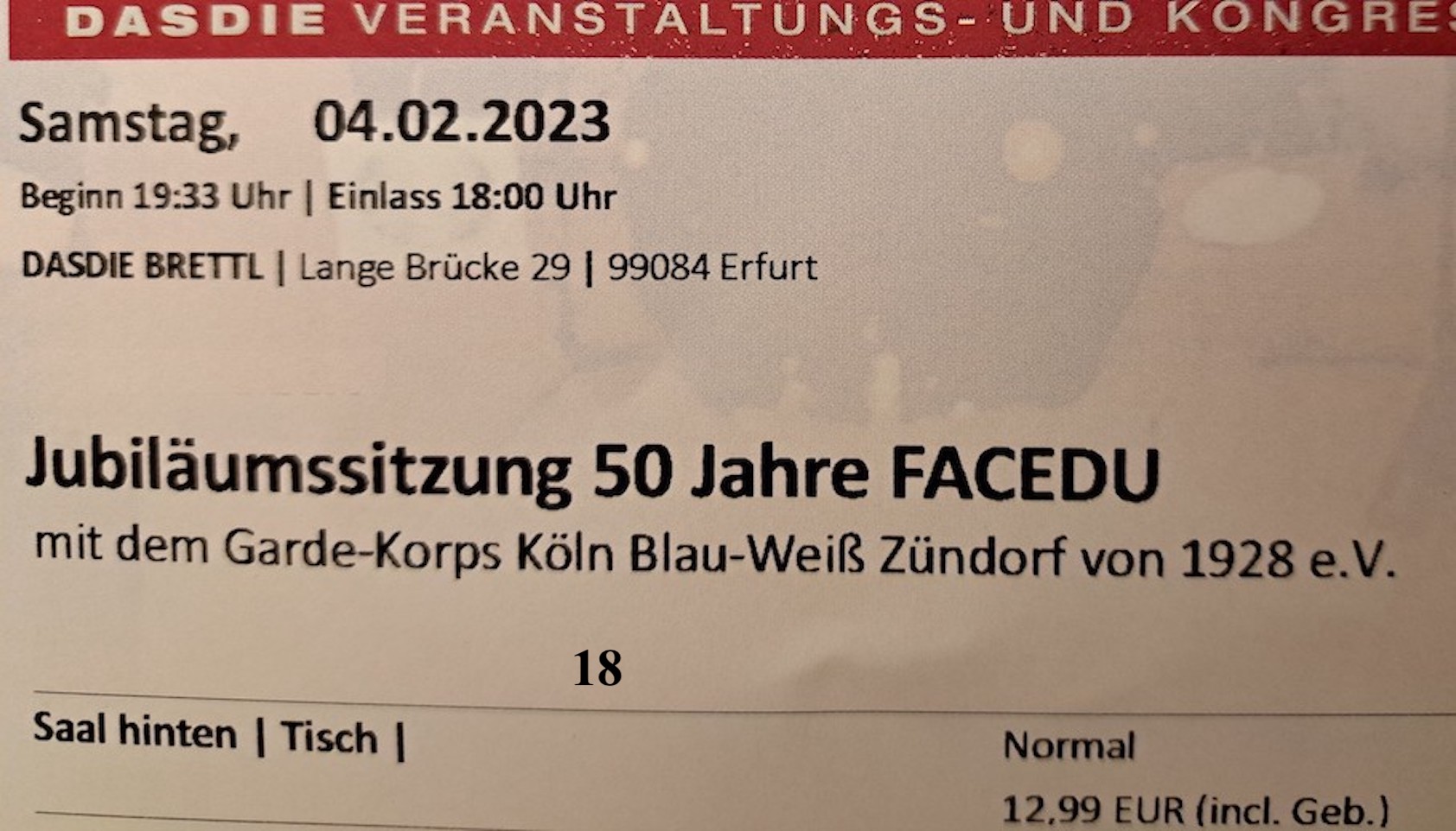 Von ANBEGINN aktiv dabei … * Mit diesem VEREIN bin ich alt geworden und doch ein wenig jung geblieben … * Dieser EINLADUNG bin ich gerne gefolgt, weil auch ein wenig STOLZ aufgekommen ist : HEUTE der größte KARNEVALSVEREIN der LANDESHAUPTSTADT Erfurt … * Ich bin froh darüber, dieses JUBILÄUM noch erleben zu dürfen und auch zu können!