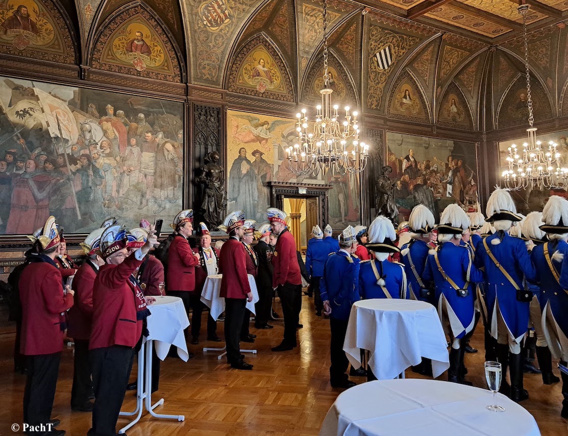 Die GLÜCKSSTERNCHEN und GARDEMITGLIEDER vom FaCeDu sind natürlich mit dabei, um den ELFERRAT zu unterstützen.Vor dem Einzug ins Erfurter Rathaus zum EMPFANG des Oberbürgermeisters Andreas BauseweinDer OB bei seinen AUSFÜHRUNGEN über die STADT und die ERLÄUTERUNGEN zu den BILDERN im FESTSAAL Ein aufmerksames PublikumDer REGIMENTSKOMMANDEUR bei seinen AUSFÜHRUNGEN, dem eine ORDENSVERLEIHUNG folgt.FaCeDu – PRÄSIDENT bei seinen AUSFÜHRUNGENDie beiden INITIATOREN des TREFFENS beider KARNEVALSVEREINE – beide sind aus dem BÄCKERHANDWERK“AUGUSTINER“ am KLEINVENEDIG Gemeinsame SPEISUNG vor dem großen AUFTRITTDer HAUPTORT der JUBILÄUMSFEIERLICHKEITEN