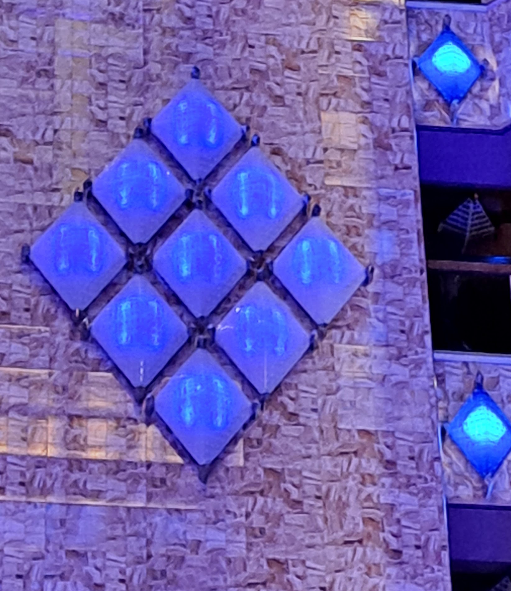 Drei Fahrstühle unmittelbar befördern hier im Atrium die PASSAGIERE vom Deck 1 bis auf DECK 11.
