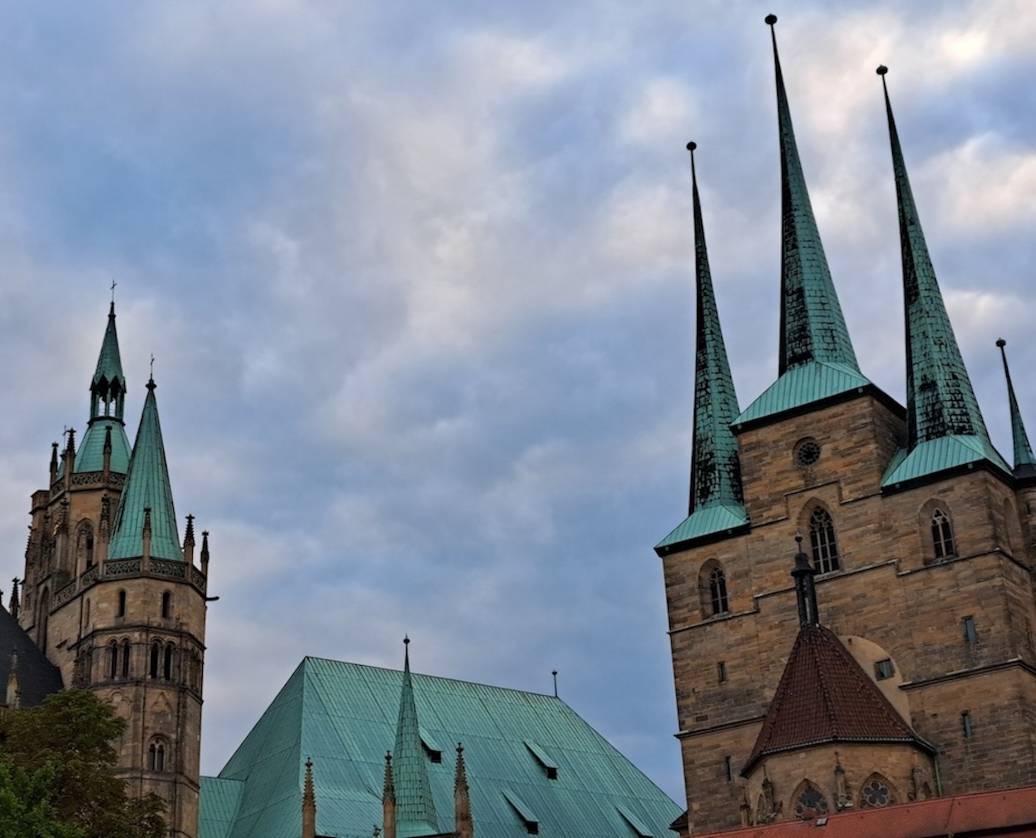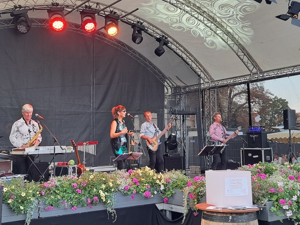 Ich trink‘ den WEIN nicht gern allein, deshalb waren meine Frau und meine Schwester meine Begleiterinnen … Veröffentlichung eines gemeinsamen Fotos war nicht erwünscht …Zu einem WEINFEST gehört eben auch MUSIK …Ein BLICK auf den Erfurter DOM vom Domplatz her …Der WEIN mundet …So sah ich mit gebührendem ABSTAND ein ein WEINZEIT …Je später der ABEND desto bunter der DOM …Auf dem HEIWEG erkannt ich jedenfalls noch sowohl das GILDEHAUS …… als auch das RATHAUS auf dem Erfurter FISCHMARKT.