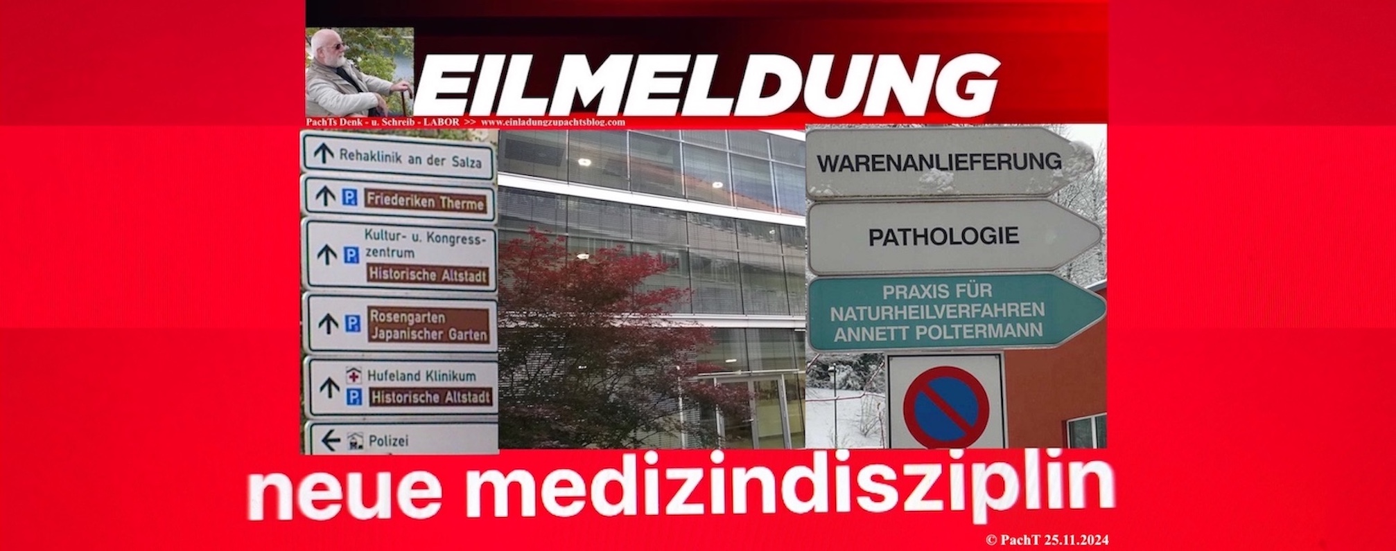 25.11.24 #EILMELDUNG – #MEDIZIN realisiert neue #Disziplin # 25. November 202423. November 2024PachT _ Autor / Blogger Mehr TABLETTEN bewirken besseres BLUTBILD !Je besser die BLUTWERTE je profitabler für die PHARMAZIE ! IDEE @ AUSFÜHRUNG @ Text / Fotos&Auswahl / Montage @ © PachT Klicke, um auf X zu teilen (Wird in neuem Fenster geöffnet) X Klick, um auf Facebook zu teilen (Wird in neuem Fenster geöffnet) Facebook Gefällt mir Wird geladen … Ähnliche Beiträge