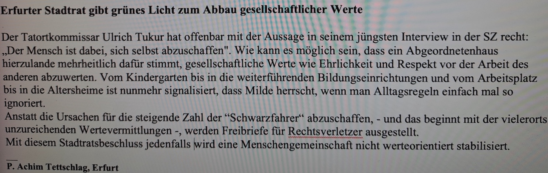18.12.24 #STADTRAT in #ERFURT ermuntert zum #SCHWARZFAHREN mit #BAHN und #BUS – #STRAFMILDERUNG ist zugesagt!
