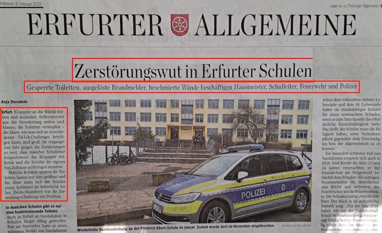 Lehrermangel, Unterrichtsausfall und vielerorts sanierungsbedürftige Schulgebäude sowie unzureichendes Zusammenwirken von Bildungseinrichtungen und Elternhäusern bewirken ursächlich immer öfter, brutaler und nachhaltiger kriminelle Energie bei den nicht zum Lernen angehaltenen Heranwachsenden. Die Politik weiß sehr wohl um diesen Zustand, doch die Prioritätenliste wird, warum auch immer, leider nicht situationsbedingt angepasst. Beobachtungen auf der Straße, in Handelseinrichtungen und Straßenbahnen lassen heute schon eine gesellschaftliche Schieflage in einer doch für betagte Bürger beängstigten Vielfalt erahnen. Doch für eine effizientere Bildungspolitik wurden bisher keine Massendemonstrationen organisiert.