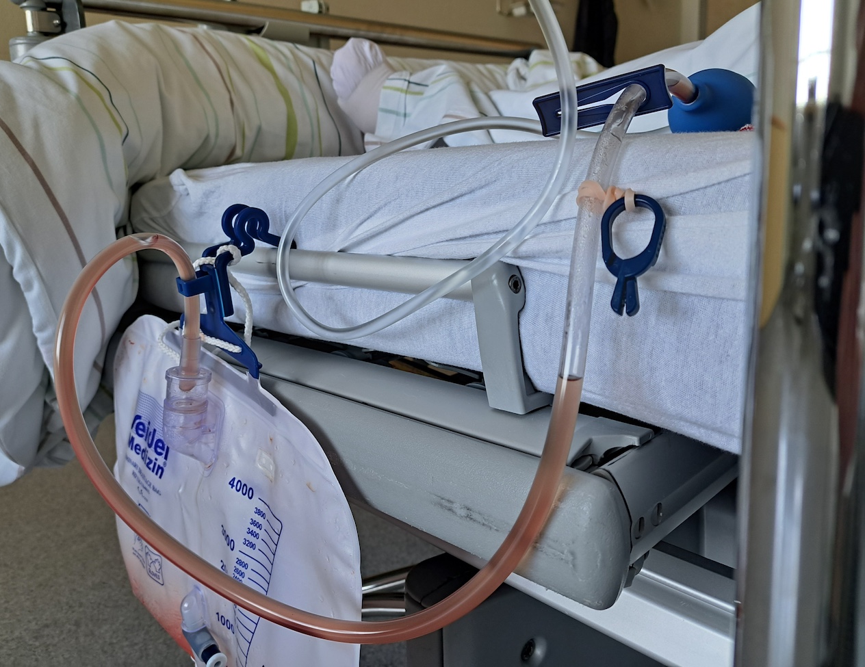 Plötzlich war er da, der BLASENSTEIN, und ich musste mich in fachkompetenteOBHUT begeben. Ich entschied mich, – wie schon einmal -, für die SPINALANÄSTHESIE … Zur ERINNERUNG und zum ANDENKEN an den ca. zweistündigenEINGRIFF wurde mir ein RÖHRCHEN mit dem mich belastendenSTEINGUT übergeben.DreiTAGE war ich mit SPÜLFLÜSSIGKEITSBEUTELN und einem dazu erforderlichenAUFFGANGBEHÄLTNIS mittels eines SCHLAUCHSYSTEMS verbunden. Erfreulicherweise hatte nach dem ABKLINGEN der spinalenBETÄUBUNGkeinerlei SCHMERZEN. Angelegte KOMPRESSIONSSTRÜMPFE und täglich eine Anti-Thrombose-Spritze sollten einen gutenHEILUNGSVERLAUF bewirken.Zwecks ABLENKUNG von der KRANKENHAUSATMOSPHÄRE stand mir ein mehrteiligesENTERTAINMENT zu preiswerterKONDITION zur VERFÜGUNG.Aus meinerSICHT gab es am ANGEBOT für FRÜHSTÜCK, MITTAG- und ABENDESSEN keinerleiANLASS zur HERUMMÄKELEI; alles war schmackhaft und somit auch bekömmlich.Für die gesamteAUFENTHALTSDAUER habe ich mich unter der OBHUT des PFLEGEPERSONALS kompetent und sicher aufgehoben gefühlt. Dafür mein ausdrüchlich herzlichesDANKESCHÖN !