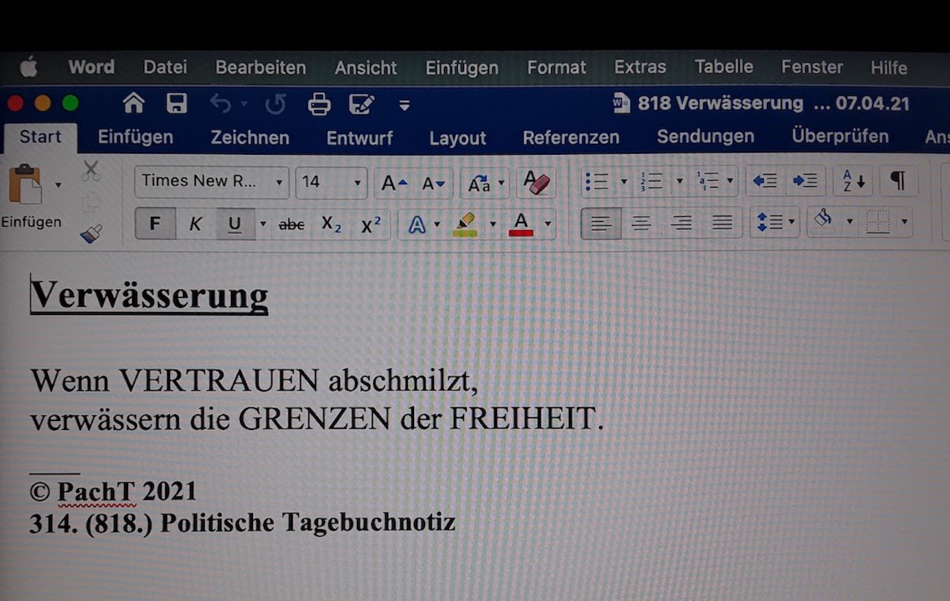 Meine ganz persönliche MEINUNG über diesen politischen IRRSINN habe ich die REDAKTION unserer REGIONALPRESSE wissen lassen: