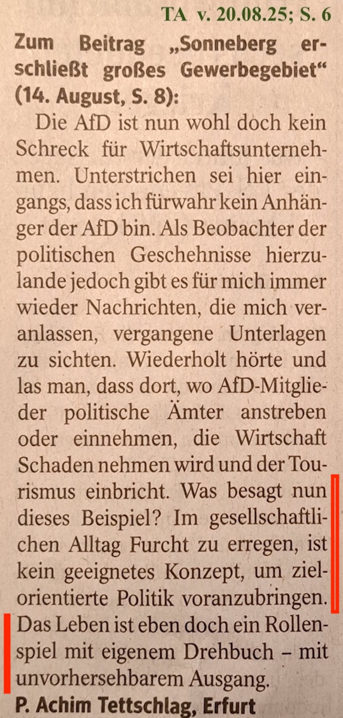 20.08.25 #POLITIK hat ein eigenes hintergründiges #DREHBUCH # 20. August 202520. August 2025PachT _ Autor / Blogger Kommentar hinterlassen Zur ERINNERUNG >>https://einladungzupachtsblog.com/2025/08/19/19-08-25-die-afd-die-politische-und-wirtschaftliche-realitat-hierzulande/ IDEE @ AUSFÜHRUNG @ Text / Foto&Auswahl @ © PachT Klicke, um auf X zu teilen (Wird in neuem Fenster geöffnet) X Klick, um auf Facebook zu teilen (Wird in neuem Fenster geöffnet) Facebook Gefällt mir Wird geladen …