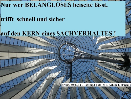 07.09.25 #MEHRHEITSSTIMMEN zu organisieren, bremst fundierte #SACHARBEIT aus # 7. September 202526. August 2025PachT _ Autor / Blogger Kommentar hinterlassen Eine REGIERUNGSKOALITION, die immer aufs NEUE in einem GESETZGEBUNGSVERFAHREN zugleich MEHRHEITSSTIMMEN aus der OPPOSITION organisieren muss, wird wohl kaum die versprochene fundierte SACHARBEIT zum WOHLE aller BÜRGER im notwendigen UMFANG leisten können.___© PachT 2025Gedanke zum derzeitigen Bundes- und Thüringer Landeskabinett*** “Den einzigen CHARAKTERKOPF im (deutschen) PARLAMENT hat der BUNDESADLER.“[E. K.] IDEE @ AUSFÜHRUNG @ Text / Foto&Auswahl @ © PachT Klicke, um auf X zu teilen (Wird in neuem Fenster geöffnet) X Klick, um auf Facebook zu teilen (Wird in neuem Fenster geöffnet) Facebook Gefällt mir Wird geladen …