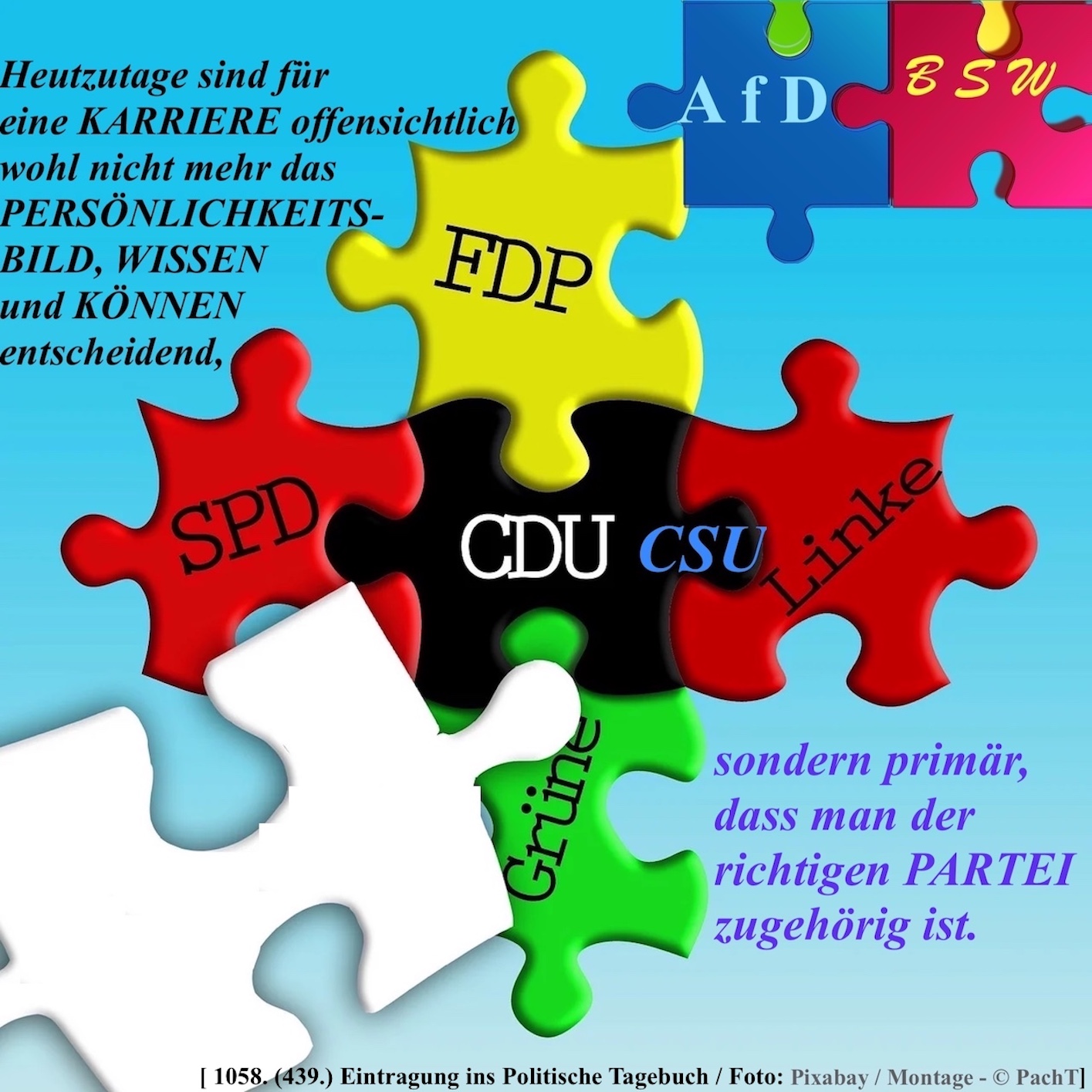 08.12.25 #GESCHICHTE wiederholt sich nach der politischen #WENDE # 8. Dezember 20257. Dezember 2025PachT _ Autor / Blogger Kommentar hinterlassen “Die PARTEI, die PARTEI, die PARTEI hat immer RECHT“*Mein JAHRGANG jedenfalls kann sich daran noch gut erinnern. Sind wir jetzt da angekommen, wo wir einst aufgehört haben? Meine 1058. (439.) Tagebuchnotiz ist dieser Erinnerung gewidmet: Heutzutage sind für eine KARRIERE offensichtlichwohl nicht mehr das PERSÖNLICHKEITSBILD,WISSEN und KÖNNEN entscheidend,sondern primär, dass man der richtigen PARTEI zugehörig ist.___© PachT SSW 1058 / 439 *** “Kein BÜRGER ist verpflichtet, seine ZUGEHÖRIGKEIT zu einer PARTEI zu rechtfertigen. “[A. Einstein] IDEE @ AUSFÜHRUNG @ Text / Foto&Auswahl @ © PachT Klicke, um auf X zu teilen (Wird in neuem Fenster geöffnet) X Klick, um auf Facebook zu teilen (Wird in neuem Fenster geöffnet) Facebook Gefällt mir Wird geladen …