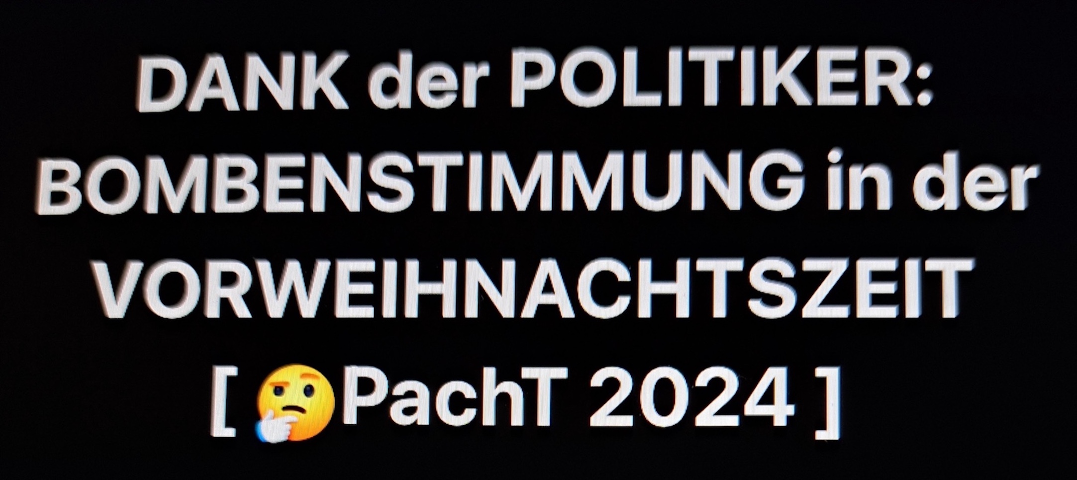 25.12.25 #WEIHNACHTEN – #GEDANKEN # 25. Dezember 202524. Dezember 2025PachT _ Autor / Blogger Kommentar hinterlassen Da hat sich fürwahr in den letzten 365 Tagen nichts geändert ! IDEE @ AUSFÜHRUNG @ Text / Fotos&Auswahl @ © PachT Klicke, um auf X zu teilen (Wird in neuem Fenster geöffnet) X Klick, um auf Facebook zu teilen (Wird in neuem Fenster geöffnet) Facebook Gefällt mir Wird geladen …