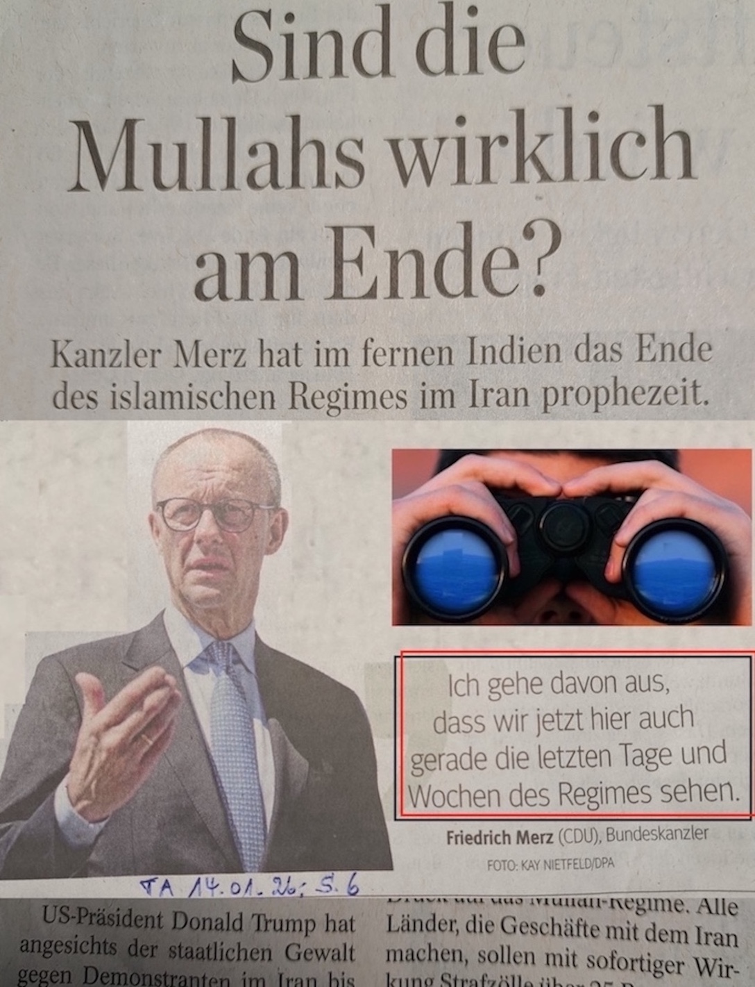 16.01.26 #Bundeskanzler prophezeit das #AUS der #MACHTELITEN im #IRAN – ob seine geopolitische #SICHTWEISE richtig ist ? 16. Januar 202614. Januar 2026PachT _ Autor / Blogger Nr. 274 “Der MENSCH schafft alles –auch seinen UNTERGANG.“[St. R.] IDEE @ AUSFÜHRUNG @ Text / Foto&Auswahl @ © PachT Auf X teilen (Wird in neuem Fenster geöffnet) X Auf Facebook teilen (Wird in neuem Fenster geöffnet) Facebook Gefällt mir Wird geladen … Ähnliche Beiträge