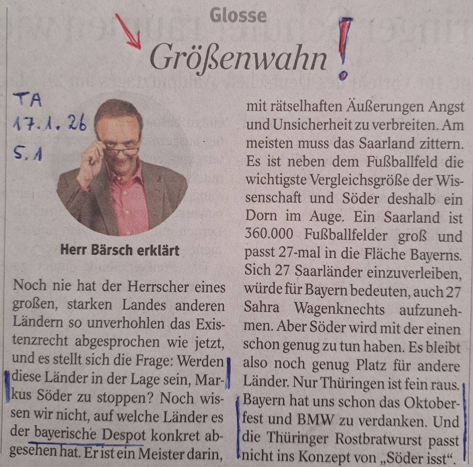 17.01.26 #GRÖßENWAHN oder was ist das sonst ? 17. Januar 202617. Januar 2026PachT _ Autor / Blogger Nr. 275 Morgen – 18.01.26 – dazu mehr ! IDEE @ AUSFÜHRUNG @ Text / Fotoauswahl @ © PachT Auf X teilen (Wird in neuem Fenster geöffnet) X Auf Facebook teilen (Wird in neuem Fenster geöffnet) Facebook Gefällt mir Wird geladen … Ähnliche Beiträge