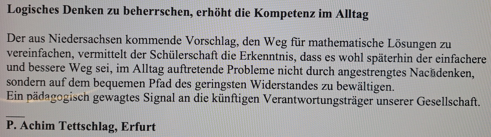 Meine MEINUNG dazu habe ich die REDAKTION unserer REGIONALPRESSE wissen lassen: