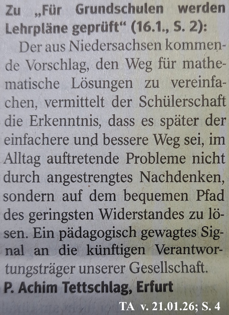 Gedanken nach Erzählungen meiner schulpflichtigen Enkelkinder