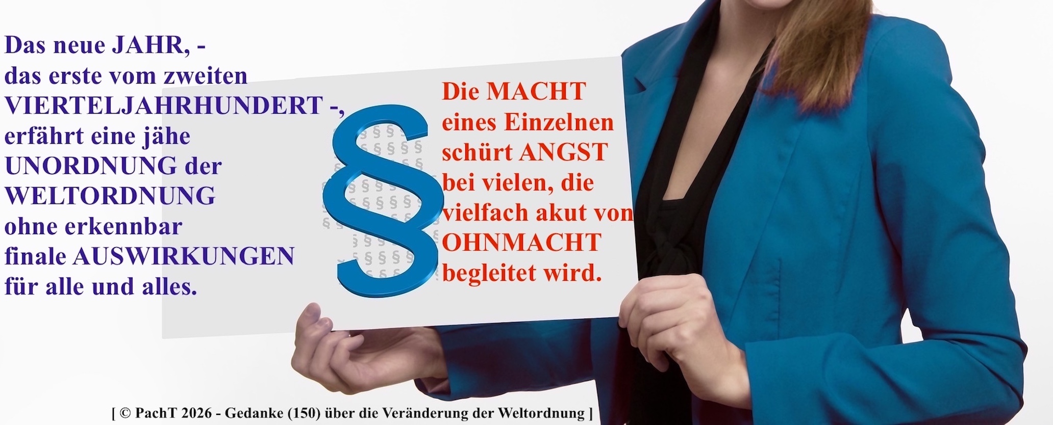 Das neue JAHR, – das erste vom zweiten VIERTELJAHRHUNDERT -, erfährt eine jähe UNORDNUNG der WELTORDNUNG ohne erkennbar finale AUSWIRKUNGEN für alle und alles.