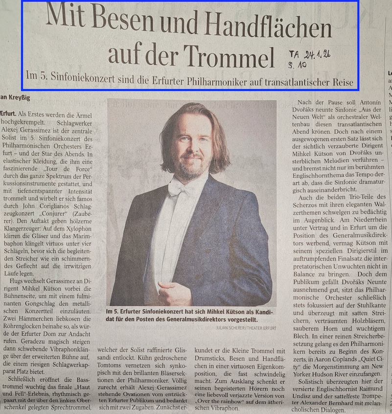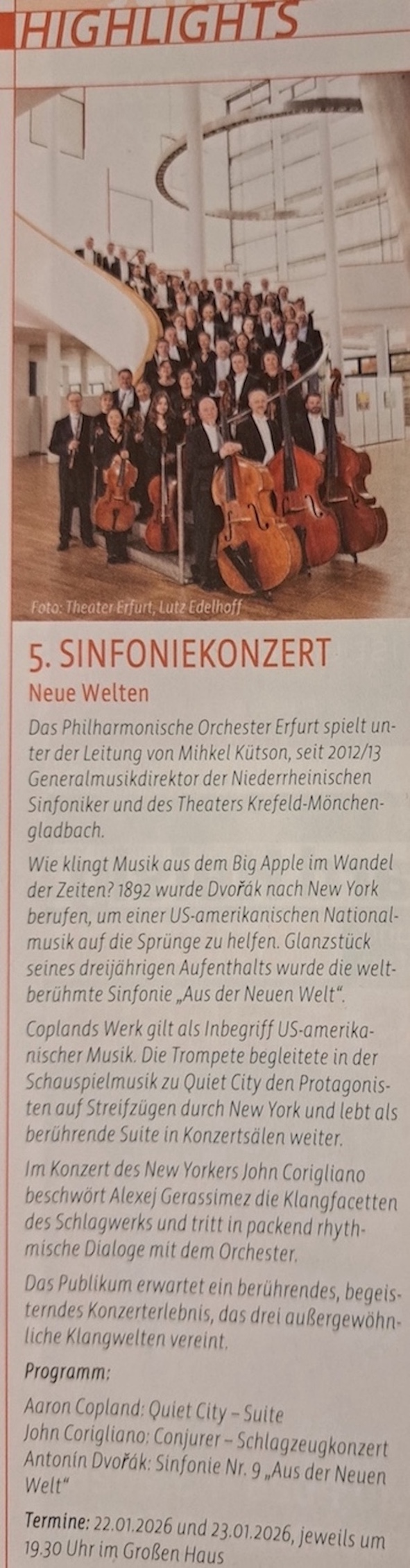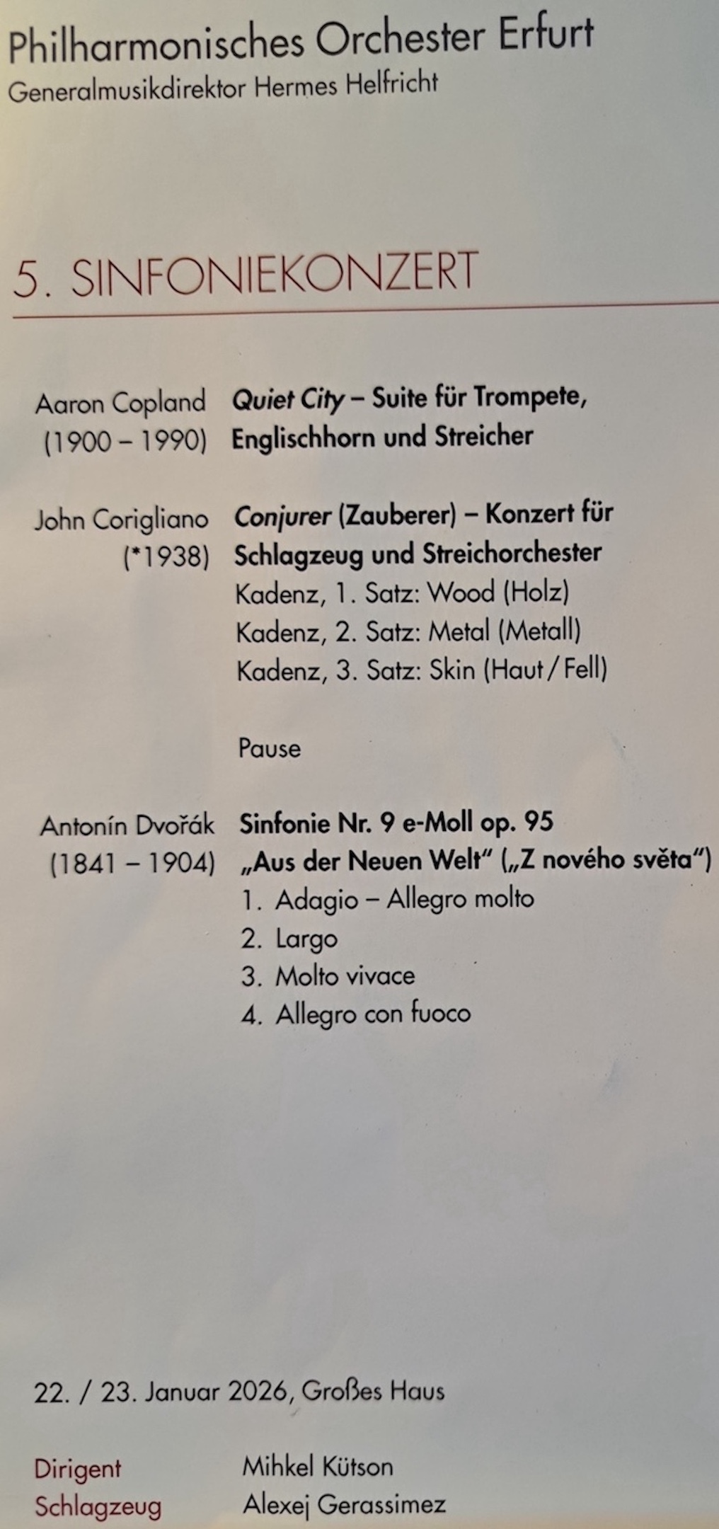 28.01.26 #MUSIK ist #BALSAM für die #SEELE – oder etwa nicht ? 28. Januar 202624. Januar 2026PachT _ Autor / Blogger Kommentar hinterlassen Ein noch nicht gekanntes musikalisches ERLEBNIS ! Stehende Ovationen und zwei Zugaben “SCHLAGZEUGER sind auch PRÜGELKNABEN.“[B. F.] IDEE @ AUSFÜHRUNG @ Text / Fotos (Programmteile aus Programmheft) @ © PachT Auf X teilen (Wird in neuem Fenster geöffnet) X Auf Facebook teilen (Wird in neuem Fenster geöffnet) Facebook Gefällt mir Wird geladen …