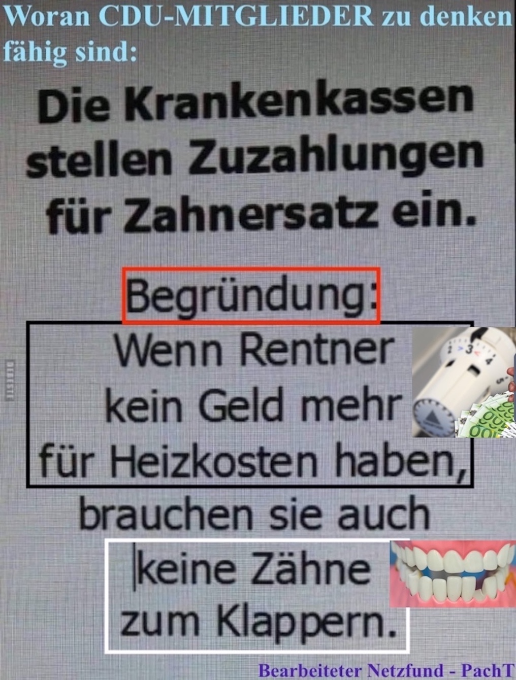 04.02.26 Alle #echauffieren sich über die ins #SPIEL gebrachte #STREICHUNG der bisherigen #ZAHNERSATZ_ZUZAHLUNG – aber sonst ist hier alles #okay # 4. Februar 20264. Februar 2026PachT _ Autor / Blogger IDEE @ AUSFÜHRUNG @ Text / Fotoauswahl @ © PachT Auf X teilen (Wird in neuem Fenster geöffnet) X Auf Facebook teilen (Wird in neuem Fenster geöffnet) Facebook Gefällt mir Wird geladen … Ähnliche Beiträge