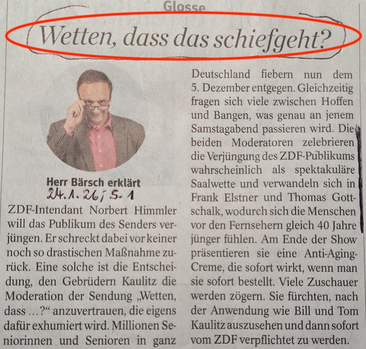 Dem öffentlich-rechtlichen ZDF fehlen IDEEN für zeitgemäße und allseitig interessierende SENDEFORMATE, sonst würde man eine so langjährig erfolgreiche UNTERHALTUNGSSENDUNG nicht wiederbeleben wollen.