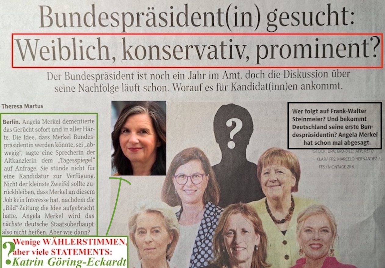 13.02.26 Fataler politischer #FEHLER, Frau #Göring_Eckardt nicht für die mutmaßliche #Vorauswahl zur #BP_Kandidatur zu benennen # 13. Februar 202613. Februar 2026PachT _ Autor / Blogger Nr. 283 Frau Göring-Eckardt hat immer alles offen an- und ausgesprochen. Sie war immer mit HERZ und VERSTAND für ihre WÄHLER da; allerdings haben diese es nicht mit ihrer WÄHLERSTIMME honoriert. IDEE @ AUSFÜHRUNG @ Text / Foto&Auswahl @ © PachT Auf X teilen (Wird in neuem Fenster geöffnet) X Auf Facebook teilen (Wird in neuem Fenster geöffnet) Facebook Gefällt mir Wird geladen … Ähnliche Beiträge