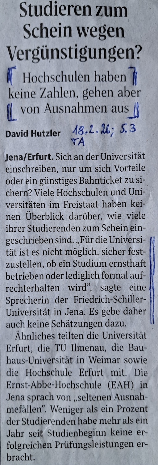 Universtäten und Hochschulen, weil gemutmaßt