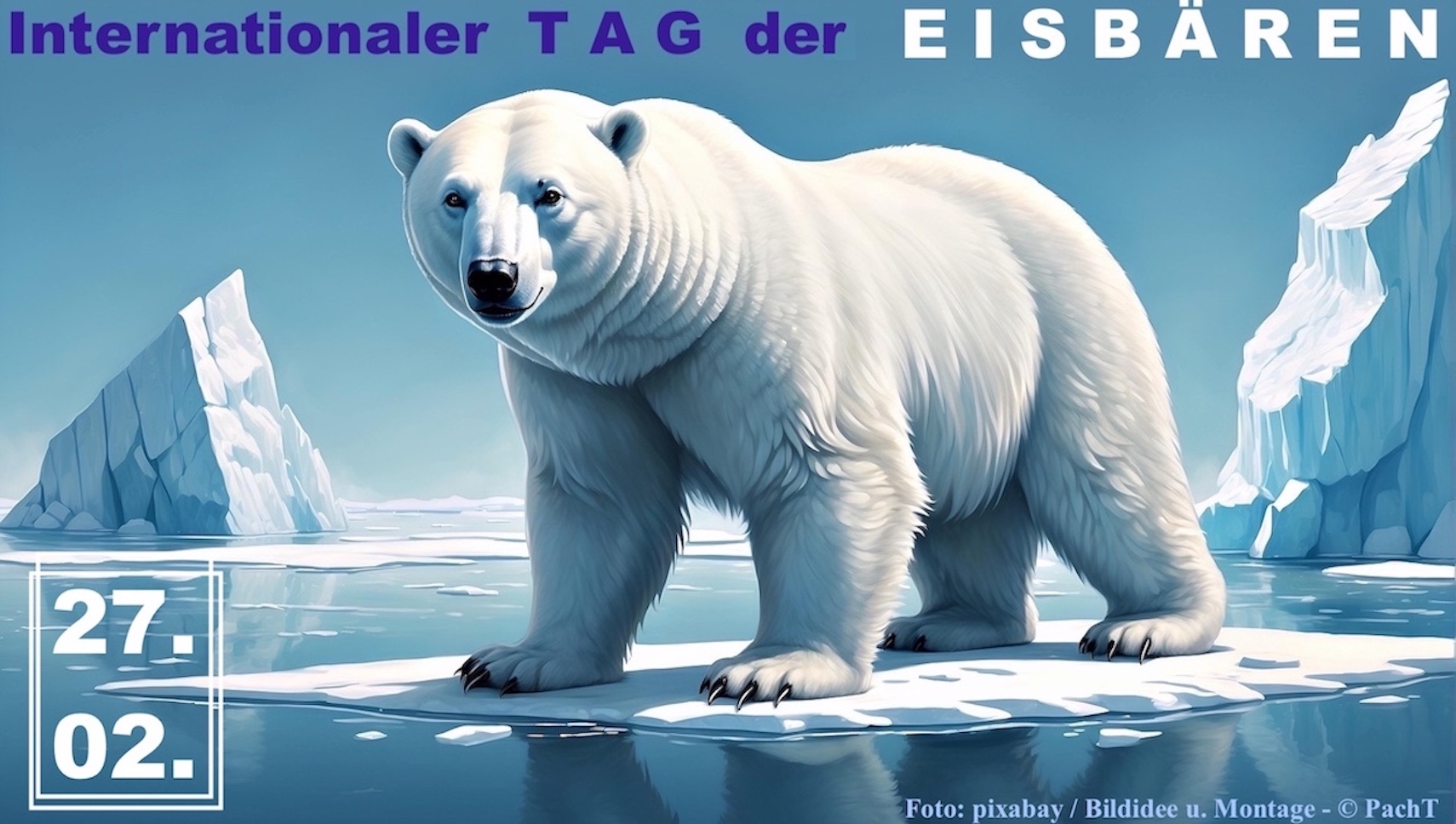27.02.26 Schon gewußt – heute ist ! 27. Februar 202624. Februar 2026PachT _ Autor / Blogger “Ein EISBÄR aus EIS ist weitaus weniger gefährlich als ein EISBÄR auf EIS.“[B. F.] IDEE @ AUSFÜHRUNG @ Text / Fotoauswahl @ © PachT Auf X teilen (Wird in neuem Fenster geöffnet) X Auf Facebook teilen (Wird in neuem Fenster geöffnet) Facebook Gefällt mir Wird geladen … Ähnliche Beiträge